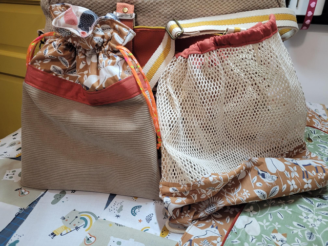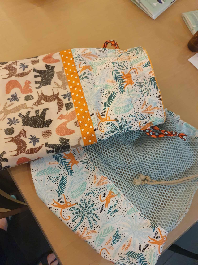 Photos de réalisations précédentes, combinées à des sacs à langer mais réalisations possibles pour tout âge et tout look !